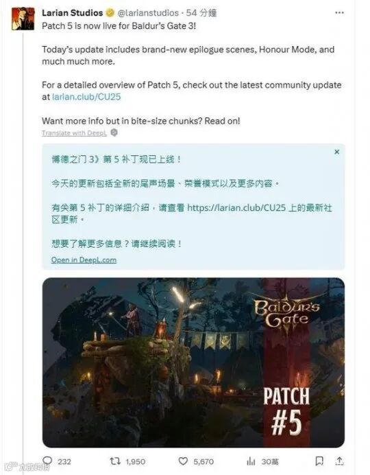 对于拉瑞安这次的大手笔更新,有玩家调侃这是他们想让TGA官方,临时再给他们加一个“最佳运营游戏”的提名。可玩笑归玩笑,这种精益求精的态度,确实是《博德之门3》能够取得如此巨大成功的原因。
