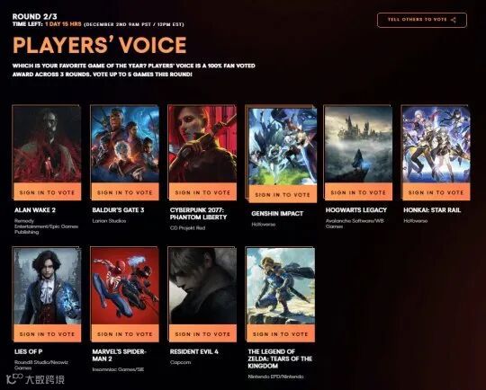 而自2019年TGA创建“玩家之声”奖项以来,还从未出现过“年度最佳游戏”和“玩家之声”奖项给到同一款作品的情况。至少今年的《博德之门3》,有望解锁这一成就。(去年的“玩家之声”获奖者为《原神》)
