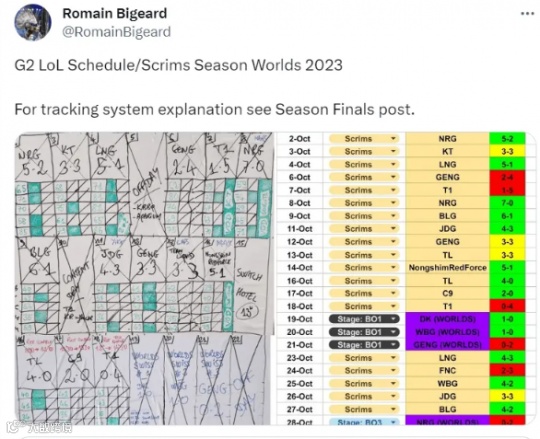 而在昨日,Romain Bigeard也是公布了本次世界赛跟其他队的训练情况。不得不说,单从战绩来看G2的表现确实出色。