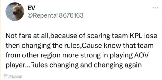 一支外卡队伍教练就在推特上吐槽了官方的做法,认为临时改规则一点儿都不公平,甚至觉得是KPL队伍害怕了。外网出现了HKA和SGP战队将退赛的消息,越南记者LePhuAn补充道“这可能不太准确,但许多国外的战队,的确因为新规开始重新布置战术、改变打法。”