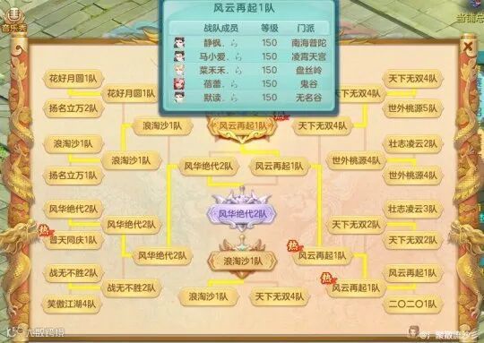 风云再起1队凭借天宫的摇摆机制在物、法、乱三套属性中转换,打出多种成熟老战术,加上阵法大克的优势势如破竹夺得冠军,虽无亮点但也足够优秀。
