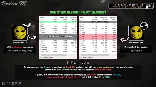 这些游戏中其实都存在为了反盗版而安装的DRM系统,如果被系统检测出其中的盗版代码,游戏的运行情况就会迅速变差,直到完全没法玩。然而破解团队也意识到了这点,便用特殊方式规避了DRM系统。反倒是使用了破解版代码的正版游戏,无法通过DRM系统。