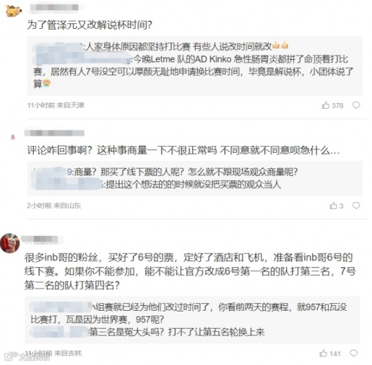 而后续网上又有消息传出,称改时间的原因是由于WEB的打野管泽元有活动,这引发大家的不满。这使得管泽元发布的最后一条微博下,已经出现了上千条不满该行为的言论。不过关于改时间的原因,无论是官方还是管泽元、Doinb,其实都没有提到具体细节。