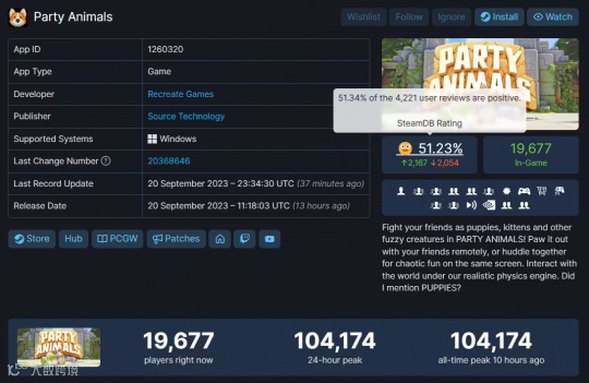 需要注意,在本周的Steam周销榜上,由所思科技开发的国产游戏《猛兽派对》位居第七位。Steam平台最高10万人的在线人数,也充分说明了这款游戏的热度。不过因为定价问题,以及开发时间过长,这款游戏曾引来了不少玩家的非议,好评率当前刚突破五成。