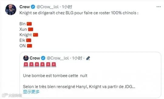 至于原本的中单Knight,已被爆料会加入BLG组建新的全华班。需要注意,BLG原有的阵容花费的预算并不高,所以这套“全明星”阵容的预算并不会像今年的JDG这么高。倘若情况属实的话,JDG和BLG新赛季的实力对比或将产生反转。