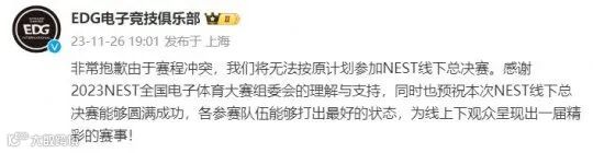 EDG临时退赛NEST:因赛程冲突