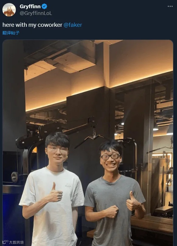 Gryffinn是一位17岁的打野选手,此番他加入T1的青训队伍的消息,也得到了Twitch主播LS的证实。后者作为曾经的T1教练候选人,一直跟俱乐部联系密切。同时Gryffinn也在个人的推特上,晒出了与“同事”Faker的合照。