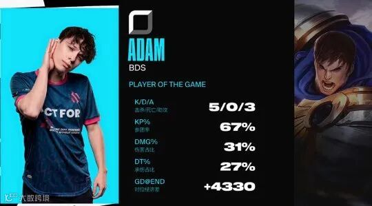 在昨日进行的S13资格赛中,LEC代表队BDS横扫LCS代表队GG晋级,期间BDS上单Adam的发挥功不可没。他在同一个系列赛中两次选用职业赛场上极为罕见的盖伦,并且还连续拿下了MVP。而不出意外,赛后所有的聚光灯都照到了Adam的身上。
