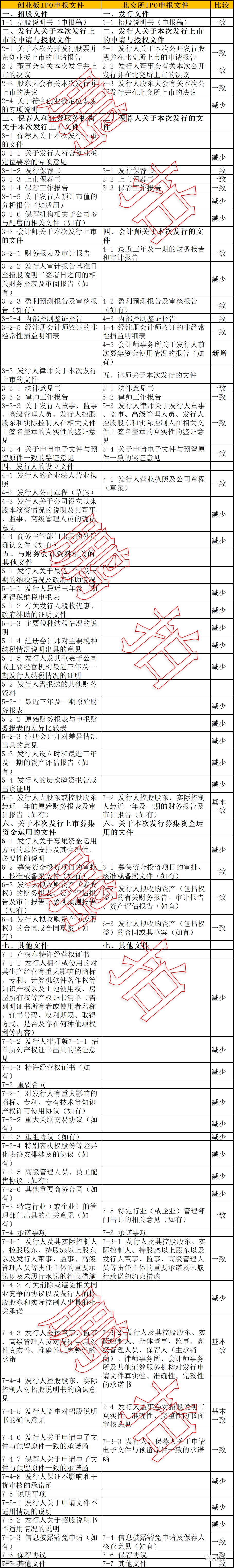 沪深交易所各板块IPO申请文件差异不大,以创业板IPO为例对比如下: