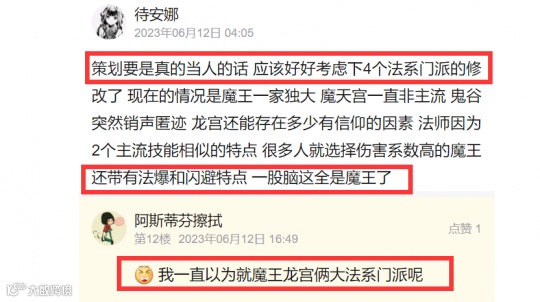 《神武4》法系门派从最开始的魔王龙宫,发展到魔王一家独大,再到现在魔王、龙宫、鬼谷、魔天宫四个门派,策划明显意识到要给魔王一些掣肘,所以才会在接下来的版本大改中,大刀阔斧增强了其他三个法系。