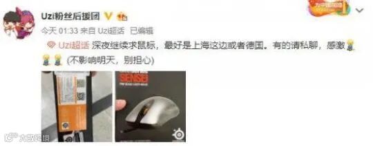 这款鼠标当前已经停产,所以通过常规渠道购买相当困难。这也是为什么需要通过网络渠道,向大家征集。而同样的事情,在S9赛季也曾出现过。当时Uzi超话的粉丝,就在微博寻求过帮助。