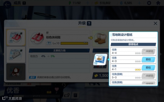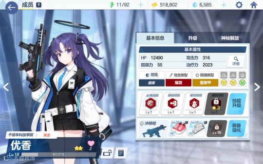 养成的部分就比较难受了。首先一个角色养成的基本要求是等级、技能、装备、神秘解放(星数),整体养成与PCR十分相似,但在养成材料上要求会比较高。