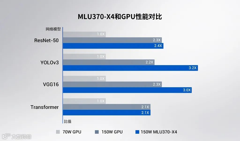 ▲ 相比主流GPU产品,MLU370-X4性能领先