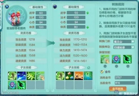 魔王孩子会考虑的子女神功无非黄帝内经、火云法诀和归魂秘术三种。其中,归魂秘术是最需要慎重考虑的,多一个拉人功能在实战中很少使用,再肉的宝宝也毕竟是宝宝,作为一个没有速率的法系宝宝容易在出手前被清理掉。而且一旦选择了这个非主流计划书不但自身资质会严重下降,以后再转门派也同样的相应降低,属于是一条不归路。