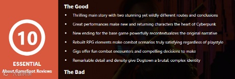 值得一提的是,将于9月26日上线的首个《赛博朋克2077》DLC《往日之影》,在今天也已经解禁了媒体评分。GS和IGN两大业界权威媒体,分别给出了10分和9分的评价。而从这个角度来说,《赛博朋克2077》也算是达到了大家最初对它的期望。
