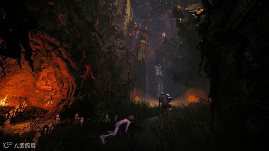游戏玩法要说的内容也不多,因为这款游戏主要是以攀爬跳跃与潜行为主要动作,互动解谜为核心。玩家可以使用咕噜特有的视觉,确认敌人的位置与朝向,并通过扔石头吸引敌人注意从而实现潜行探索,也可以在敌人背后实现暗杀,这也是咕噜唯一的击杀手段。但由于粗糙的建模与位置判定,玩家在跳跃又或者是扔石头解谜,都会受到相当大的影响,脚滑摔下山崖的事件也时有发生。