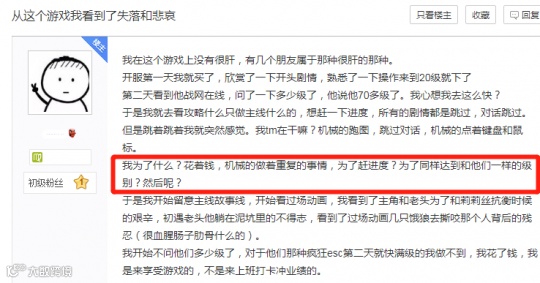 尽管有萌新玩家最初加入时,还会留意《暗黑4》的世界观、背景故事。可看着大家的等级越来越高,渐渐也变成了对话、剧情全跳过,查询攻略也只是为了了解哪个副本经验给得多。可这种单机游戏玩法,却有悖于现代玩家的部分玩法习惯。