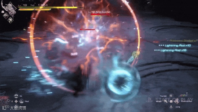 战斗部分也是相当丰富,首先动作设计体现的就是一个爽快,虽然这是FF系列中比较少见的完全即时的动作式战斗系统,但找了鬼泣的动作设计大佬来设计后,确实呈现出了更加的独特动作模式,空中连击,弹刀,蓄力,完美闪避反击,基本上你能在动作游戏中看到的常见设计也都能FF16中看到,还是带SE独家光污染的那种。