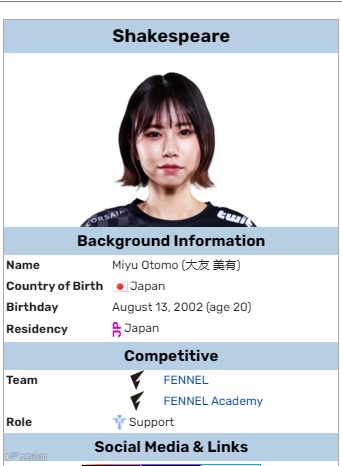 作为LJL百分百胜率选手,Shakespeare今年只有20岁,真名大友美有。网友评价“这名字一听就适合打LOL”,算是玩了谐音梗。(大有没有)