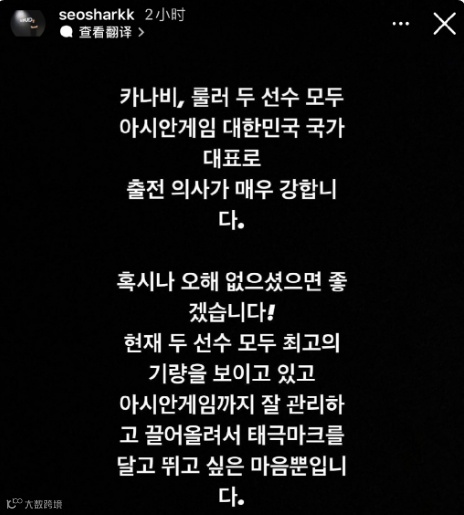 此外,Kanavi和Ruler的经纪公司,在MSI季中赛夺冠后也不确定效力LPL赛区会不会对入选亚运会有影响。因此在5月23日主动发布了消息称:“Kanavi和Ruler两位选手对于作为韩国国家队代表出征亚运会的意志都很强烈,希望不会产生误会!”