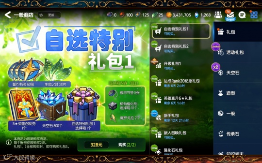 除了在角色展示方面有特色外,这款游戏的氪金与抽卡也有特色,有着小氪不如零氪,重氪也不一定能打赢零氪的特点,所以基本上你看到的所有礼包,无论性价比高不高,都是可以不买的。