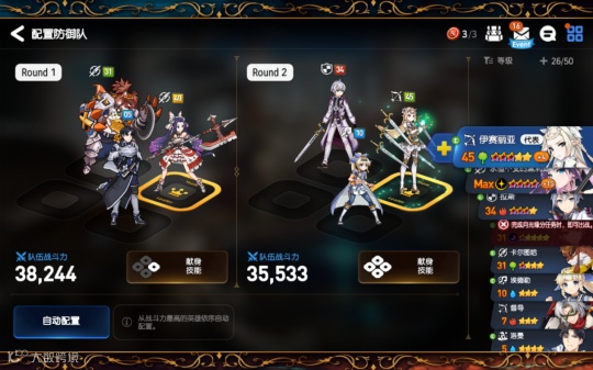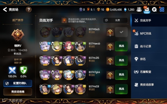 由于目前国服的世界竞技场(RTA)还未开启,整体也更偏向于后期才能参与的玩法,这里就不说了,就简单说一说竞技场与公会战。竞技场比较简单,玩家选择四人队伍进攻,防守队伍放置好四人队伍后由AI进行防守,获胜可以获得积分和征服点数,任何时间都能进行。