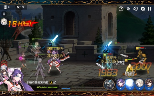 第七史诗的主要玩法分为PVE和PVP部分。战斗系统是经典的速度条回合制,角色可以消耗灵魂使用出强化版的技能,国内类似的游戏有阴阳师,两者战斗模式几乎相同。战斗中还带有闪避、抵抗、睡眠、暴击等等机制和buff,所以需要考虑到的战斗因素非常多。