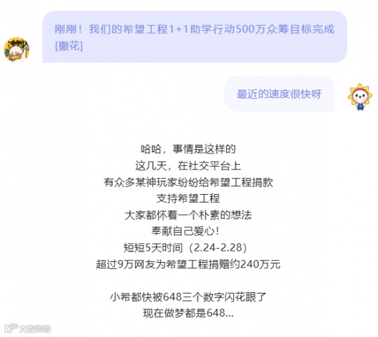 昨日,希望工程的公众号发布了一篇特别的文章,以对外宣布希望工程1+1助学行动的500万众筹目标达成。这个速度,远远超出了最初的预期。而促成这件事的最重要推手,就是《原神》玩家所做出的善举。