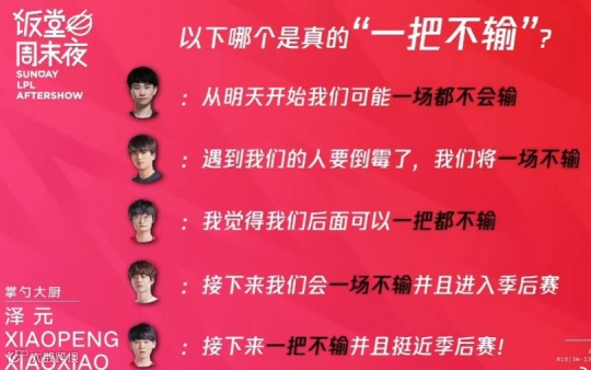 可以预见的是,即将到来的LPL季后赛,将为饭堂节目提供更多新素材。只是不知道,哪些选手会因为自身的表现成为主角。