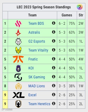 虽然不确定FNC这套新阵容能走多远,但至少现在的这支FNC,跟上赛季同期相比要好上许多。而自春季赛开赛以来,LEC赛区并未涌现出足够有统治力的队伍。G2、VIT、MAD都排在积分榜中下游,BDS和AST名声不显的队伍反倒名列前茅。