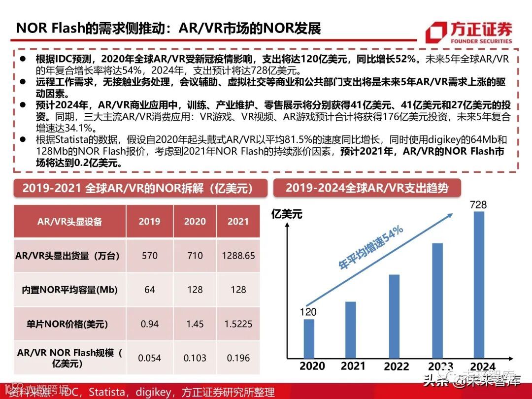 性能较高的AR/VR设备通常会配置一颗64-128Mb的NOR。AR/VR启动系统的相关代码需要存放 在NOR里。