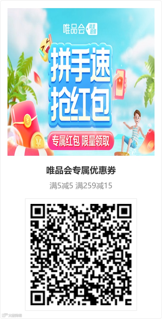 导读:唯品会满5-5、259-15品类券(4月15日)——券被领完,可联系后台