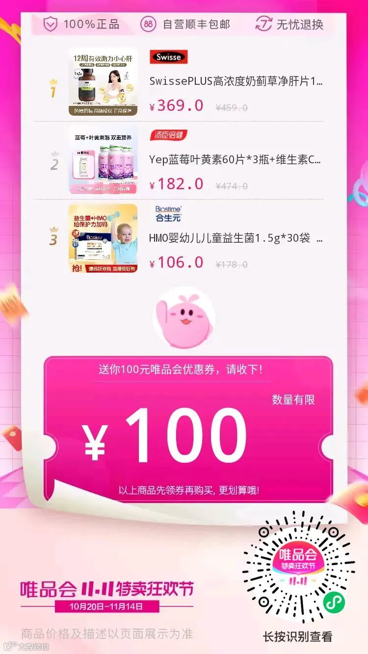 导读:11.2唯品会优惠券,人人可以领(11.2新券)