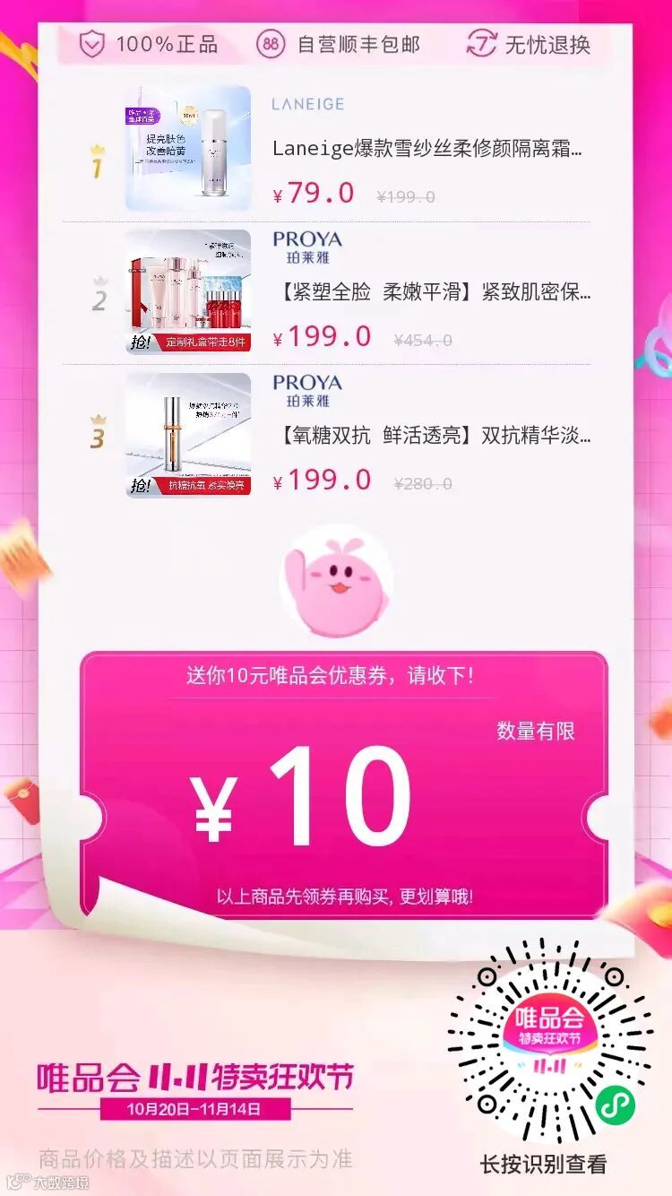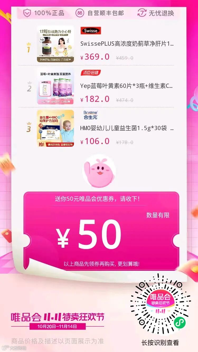 11.2唯品会优惠券,人人可以领(11.2新券)