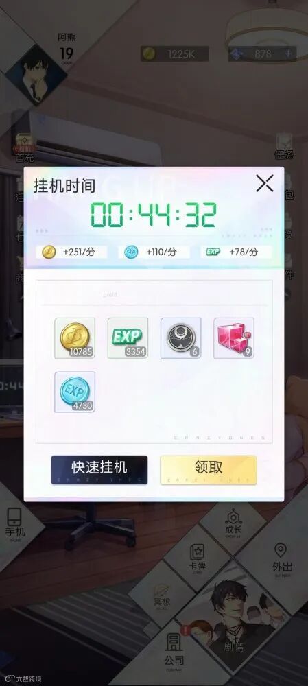战斗能玩的内容都比较常规,包含了竞技场、爬塔、迷宫探索、主线剧情等大部分游戏都涉及到的玩法。脱离了战斗后,还会有不少小游戏,公司的模拟经营、炒股票、角色换装,都是本作亮点的一部分,而这部分对应的收获也可用于兑换5星卡,对于有时间的小伙伴来说会是个不错的消遣,但如果想用养老的心态玩,进度一时半会肯定是追不上了。