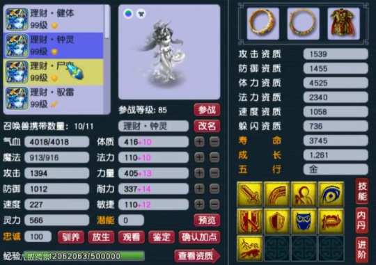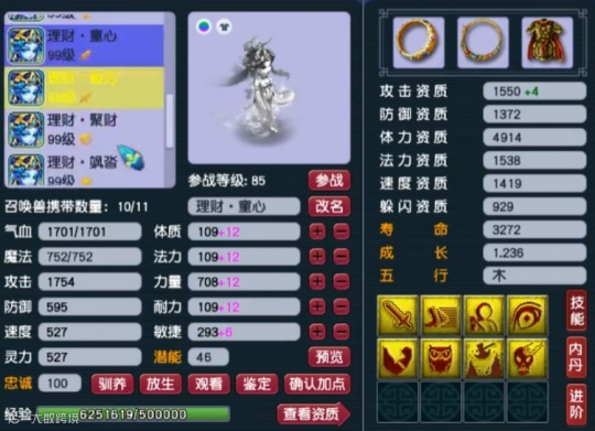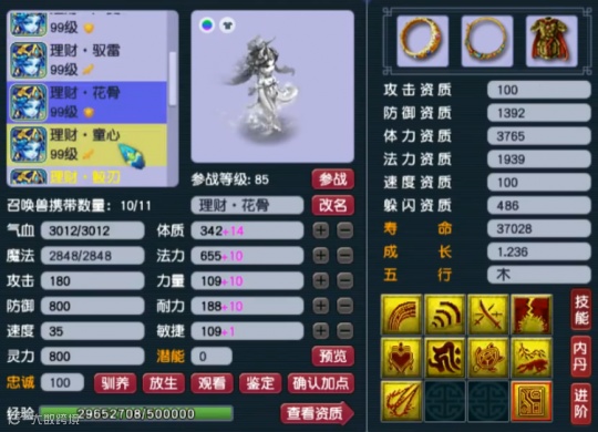 第一只召唤兽为12技能壁垒,资质、成长、技能组都非常不错,再养个一年就能直接起飞。