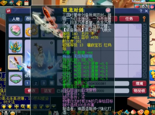 武器部分为140级初伤451、初总伤776.3,单加44点敏的无级别双剑,综合属性非常给力。