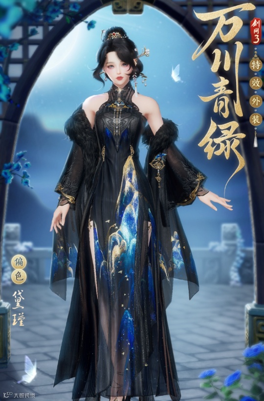 这套特效外观是难得的几乎赢得所有玩家的好评的外观之一,材质丝滑又不失质感,衣袖裙摆的泼墨设计加上衣身勾勒出的瑰丽山水,将内涵与雍容合为一体。什么叫低调奢华有内涵?这不就是了。