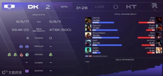 ShowMaker先是表示对自己的表现不太满意,最多只能打个6分及格,只是队伍整体的节奏比较好。但他在赛场上实际表现却是一把阿卡丽,一把杰斯都乱秀了对面,为队伍创造了很多获胜的机会。