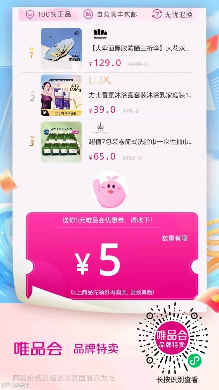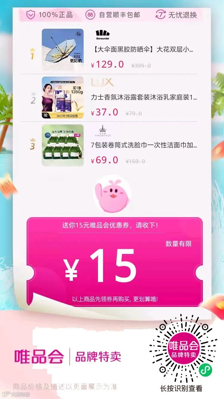 9.3唯品会满299-15元穿戴美妆体用优惠券(8.31新券)