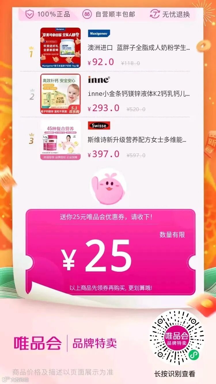 5.6唯品会优惠券,人人可以领(5.1新券)