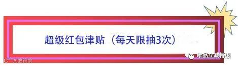 ▣限时加码:每天晚七点限时一小时(即19点-20点),加抽3次抽奖机会,限量抽4.19元津贴,每个用户仅中一次。