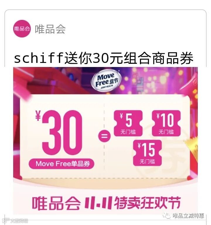 Schiff送你30元组合优惠券(11月8日)——券被领完,可联系后台