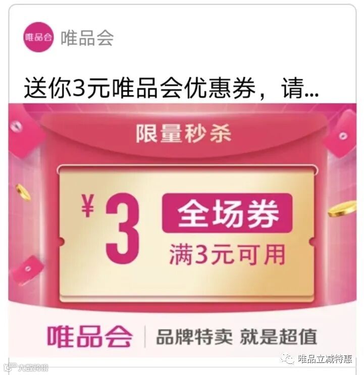 唯品会优惠券——满3-3全场券。