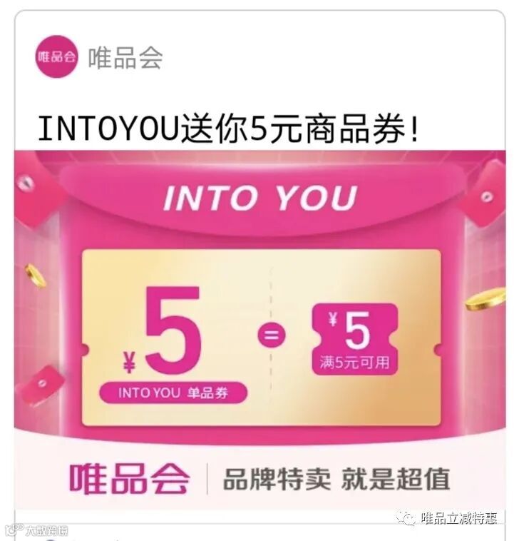 INTO YOU送你5元优惠券(11月28日)——券被领完,可联系后台