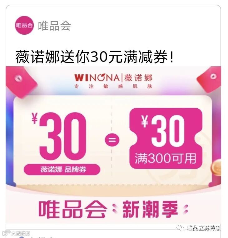 薇诺娜送你满300减30优惠券(10月7日)——券被领完,可联系后台