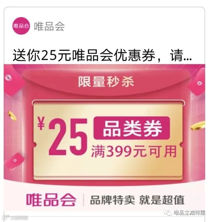 唯品会满399-25品类券(12月3日)——券被领完,可联系后台