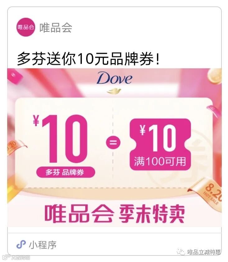 Dove多芬送你100-10元优惠券。