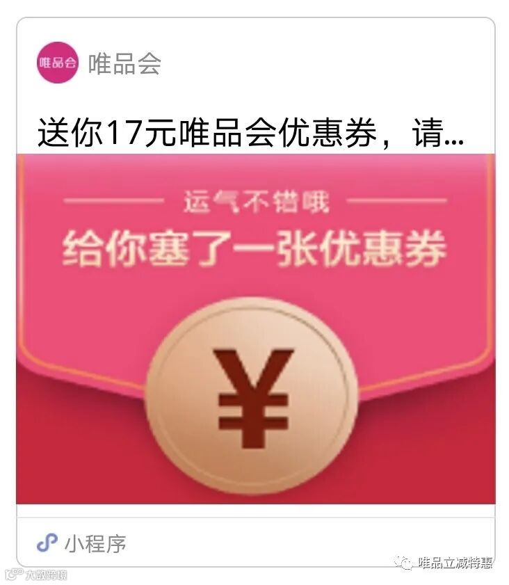 唯品会满17-17组合优惠券(8月20日)——券被领完,可联系后台