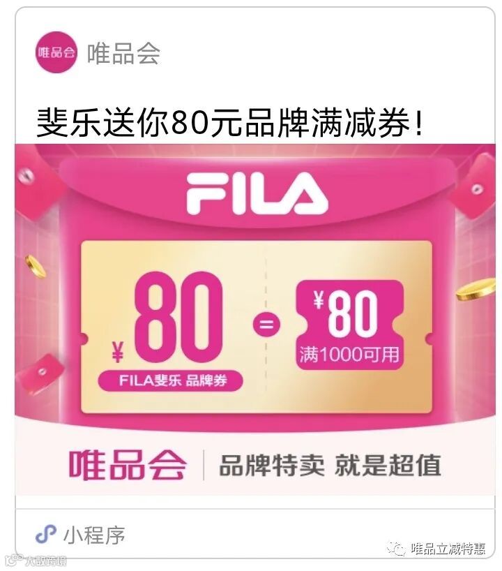 导读:FILA斐乐送你80元优惠券(8月29日)——券被领完,可联系后台